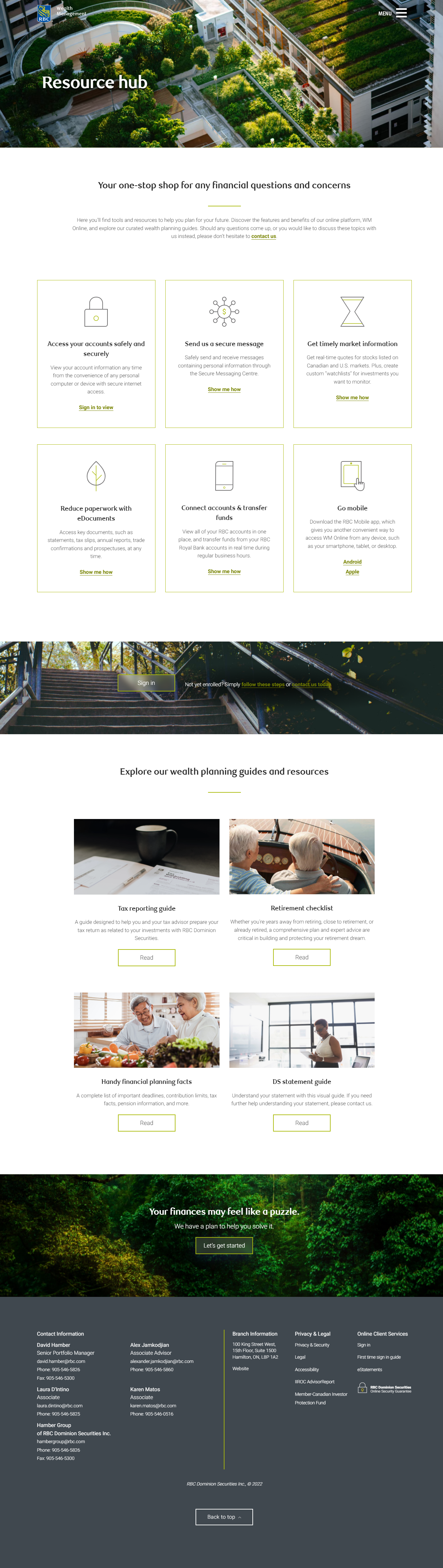 This team of investment advisors from RBC Dominion Securities wanted to empower their clients by providing self-guided tools and resources in one spot. This served a dual purpose of educating clients about their financial planning while also reducing the number of calls and requests to the administrative team.
